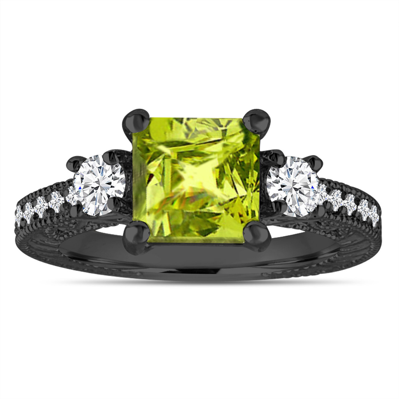Ad Jewelry From Unique Items. 50000 Satisfied Customers Already. Peridot and Diamonds Engagement Ring 155 Carat Vintage Peridot Wedding Ring Three Stone Engagement Ring 14K Black Gold Certified.